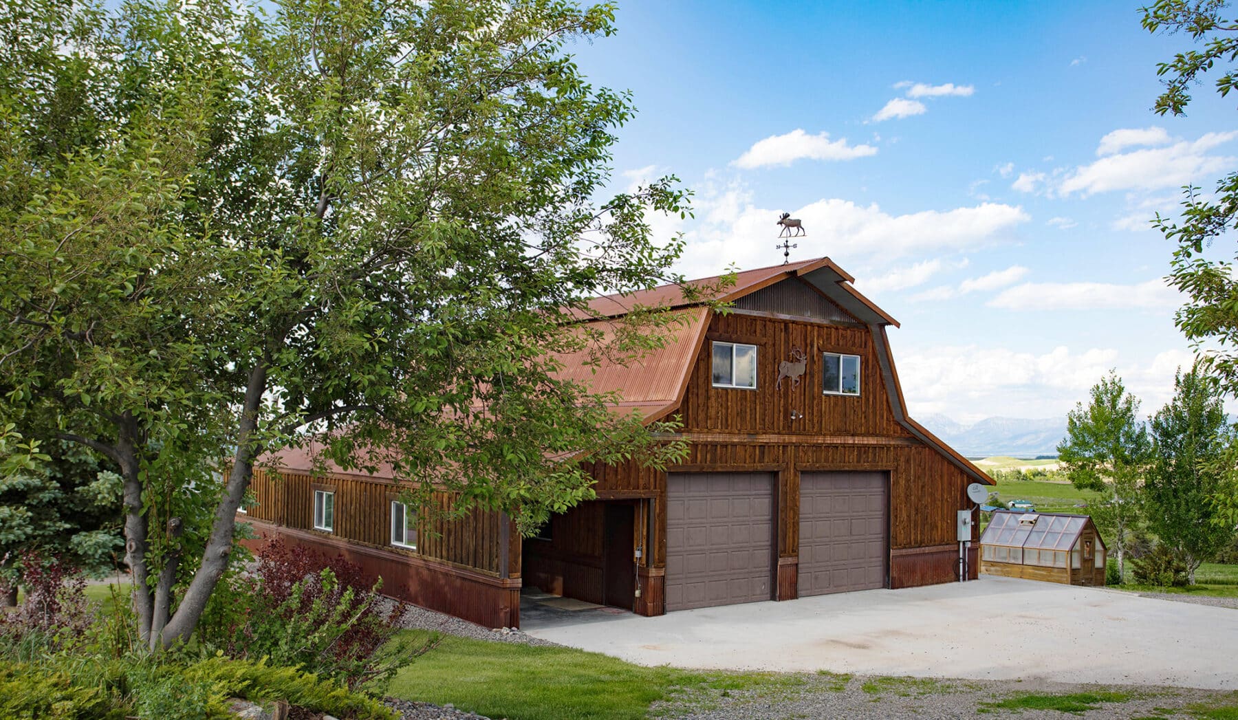 This beautifully updated home on over 13 acres with mature landscaping and horse pastures creates a tranquil and serene setting only minutes from all of the amenities and activities in Bozeman. A true Montana living experience, this address allows school attendance in the highly-rated Bozeman School District. The home includes four bedrooms, 3.5 bathrooms, and an open floor plan that nicely blends the gourmet kitchen into the dining area and living room capturing the beautiful mountain views. A detached oversized garage includes a spacious wood shop, several built-in storage cabinets, and an upper-level workout suite. A third building includes a fully enclosed heated shop with a concrete floor and several bays of pole-barn storage. The parcel is perimeter fenced with an interior fence creating two pastures and a small round riding pen — ideal for horses.