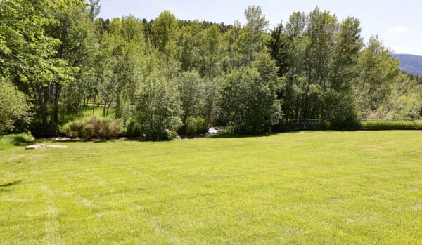 The shop building is all under one roof and has three bays – two fully enclosed and one covered pole-barn bay. The exterior, constructed with recycled wood and corrugated tin siding, blends into the natural riparian setting created by the big aspens and cottonwood trees that line the fork of South Meadow Creek that rushes past to create a hidden and private environment. The two enclosed bays have concrete floors. One side measures approximately 19.5′ x 45′ and has been used as a woodshop with multiple 220v electrical drops that are well positioned for woodworking equipment and there is nice ambient light from the wall of north-facing windows. The middle ‘RV Bay measures approximately 18′ x 52.5′ with a full concrete floor and two roll-up doors that measure 10′ x 12′ on the west and 12′ x 12′ on the east. The shop building is completed with additional pole-barn storage that runs the entire length of the RV bay offering covered, but open dry storage. The shop includes an alarm system for peace of mind with valuable equipment, tools, and vehicles.
