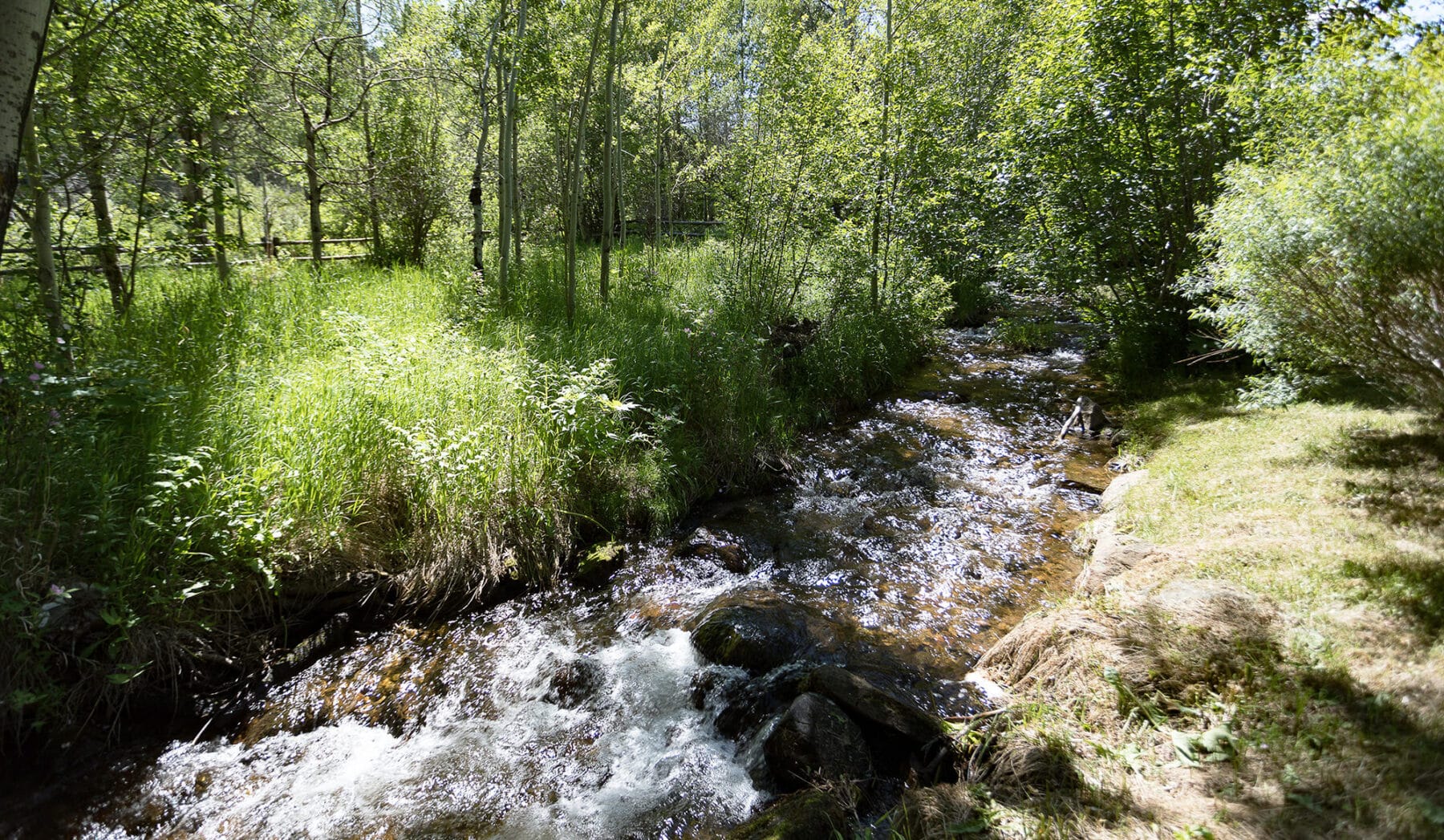 The Property sits just above 5,600 feet above sea level on the timbered northwest corner and drops about 200 feet to just over 5,400 feet above sea level on the southeast corner of the property where South Meadow Creek exits the property.