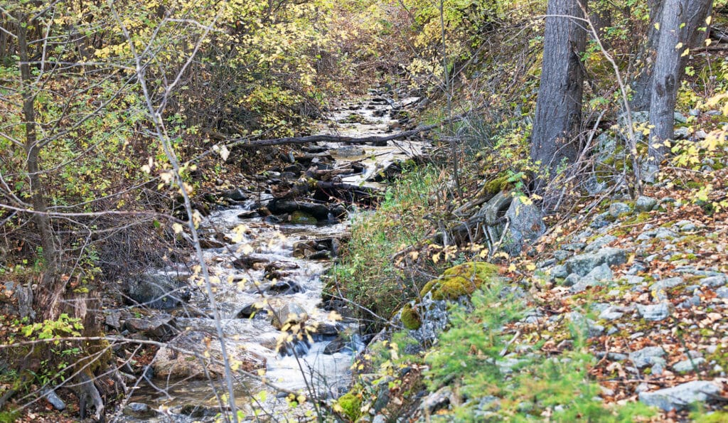A small two-stall horse barn, situated southwest of the manager’s house, is in serviceable condition but will likely require updating for an equestrian enthusiast. The horse barn is accessed by a bridge that crosses Bostwick Creek and is tucked into a beautiful landscape of native junipers, and aspen and cottonwood trees along the creek. Bostwick Creek flows on a year-round basis and has a population of native fish, not a fishery, but rather just a very nice live water component for riparian ambiance and stock water.