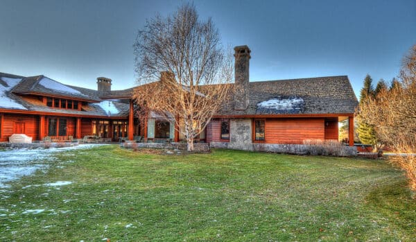 The centerpiece of Bostwick Canyon Estate is the custom-crafted and architecturally-designed 11,417 square-foot home that is perfectly complemented by a mature landscape that includes a swimming pool and tennis court in a sublime Montana mountain setting. The home was designed by locally-renowned architect Don McLaughlin and built by craftsman Arlee Green. The exterior architecture of the home features custom cedar timbers, wide-plank cedar siding, and extensive Pennsylvania blue-stone patios, pathways, and walkways. The timbers were all custom hewn and milled specifically for the project from entire western red cedar trees in Port Angeles, Washington. This level of quality and craftsmanship set the stage for the custom carpentry found throughout the Estate. Complemented with perfectly matched stone chimney caps and graceful roof pitches, the home integrates seamlessly into the setting and landscape.