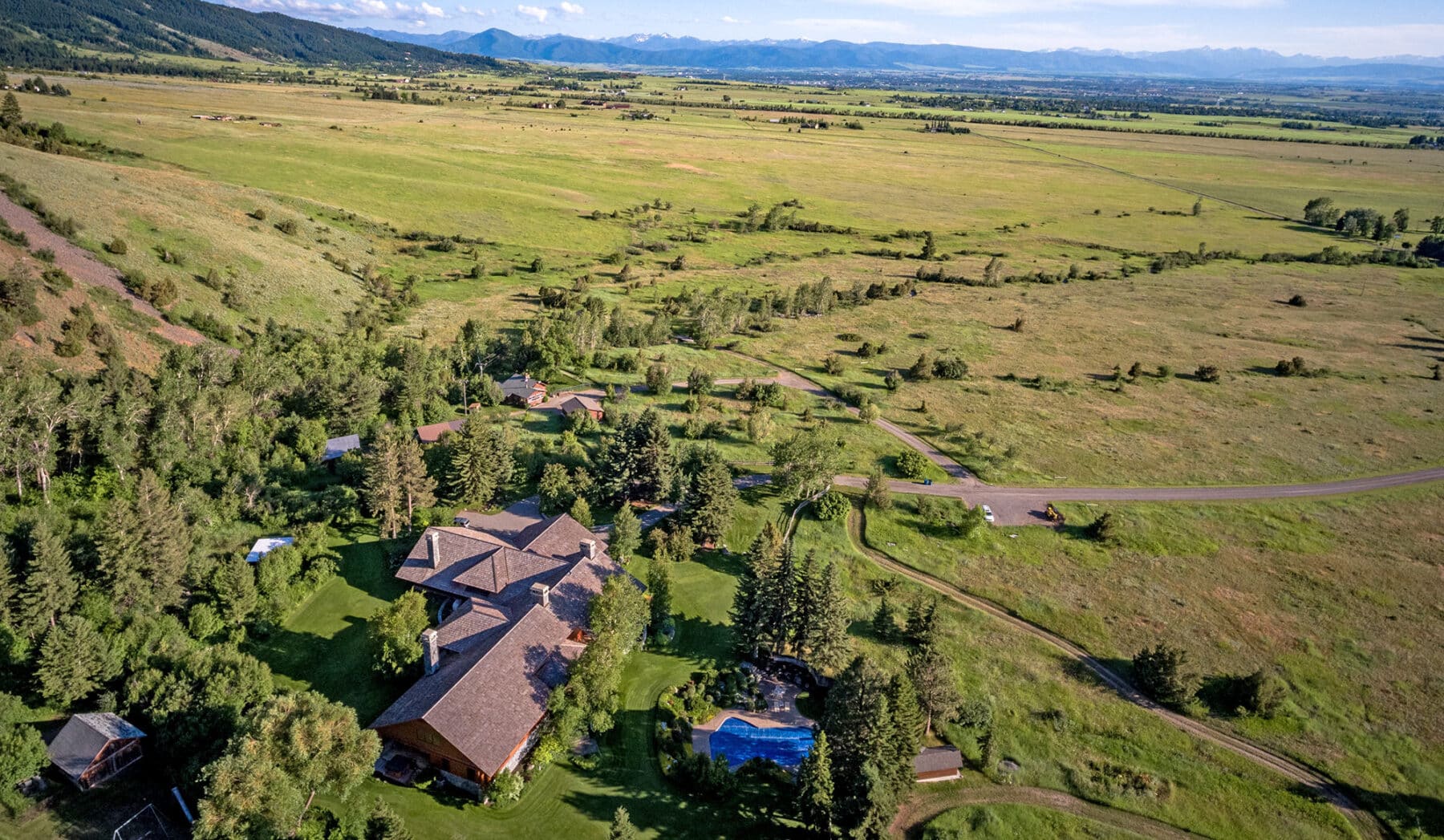 Bostwick Canyon Estate sits in a truly rare and exceptional setting at the foothills of Gallatin County’s picturesque Bridger Mountain Range. This 173± acre estate provides a stunning private mountain setting befitting the exceptional improvements. Nestled into a beautifully landscaped mountain-foothills setting, the Estate features an architecturally-designed home built with the finest of craftsmanship and materials, complete with an outdoor swimming pool, tennis court and Caretaker’s home. It is extremely rare to find an estate of this size and grandeur in the bustling Bozeman area that provides natural beauty, seclusion and privacy without being remote. With commanding views of the entire Gallatin Valley extending to the Spanish Peaks, Gallatin and Tobacco Root Mountain ranges, the Estate is only minutes from Bozeman, Belgrade and the Bozeman Yellowstone International Airport.