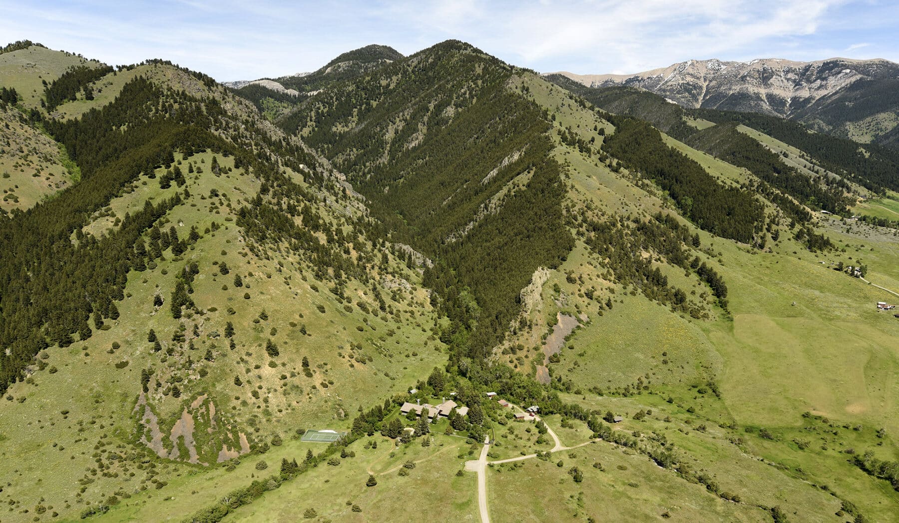 Located in one of the Gallatin Valley’s most traditional agricultural locales, Bostwick Canyon Estate can be maintained as a very productive “gentleman’s ranch” operation. The 173± deeded acres of foothill alpine-mountain terrain includes open meadows with a blend of native grasses and foothills flora such as cottonwood, aspen, dogwoods and junipers that transition into the famed Bridger Mountain Range. With good county-road access, the Estate is ideally situated for a small gentlemen’s ranch or nice-sized horse operation.