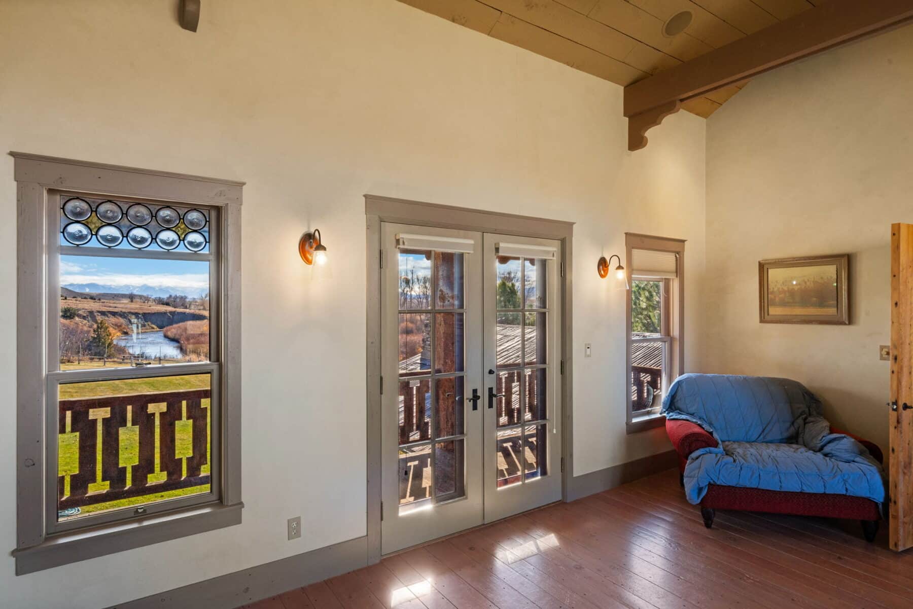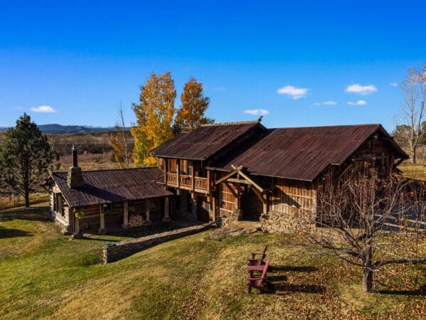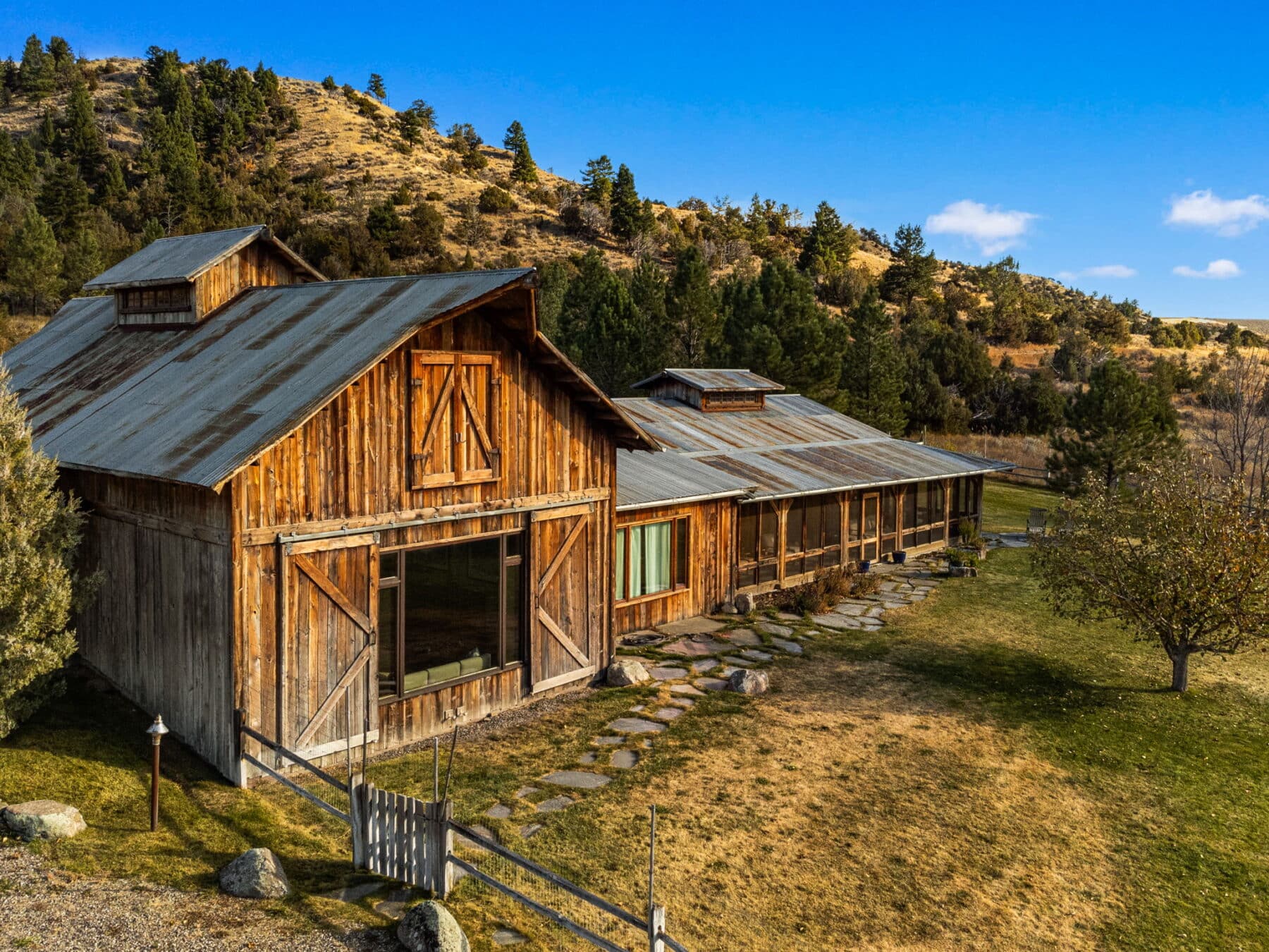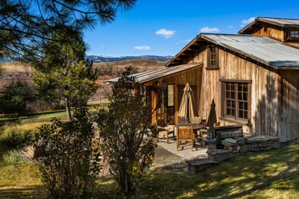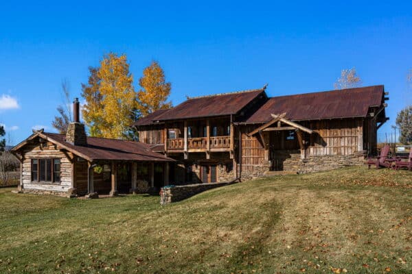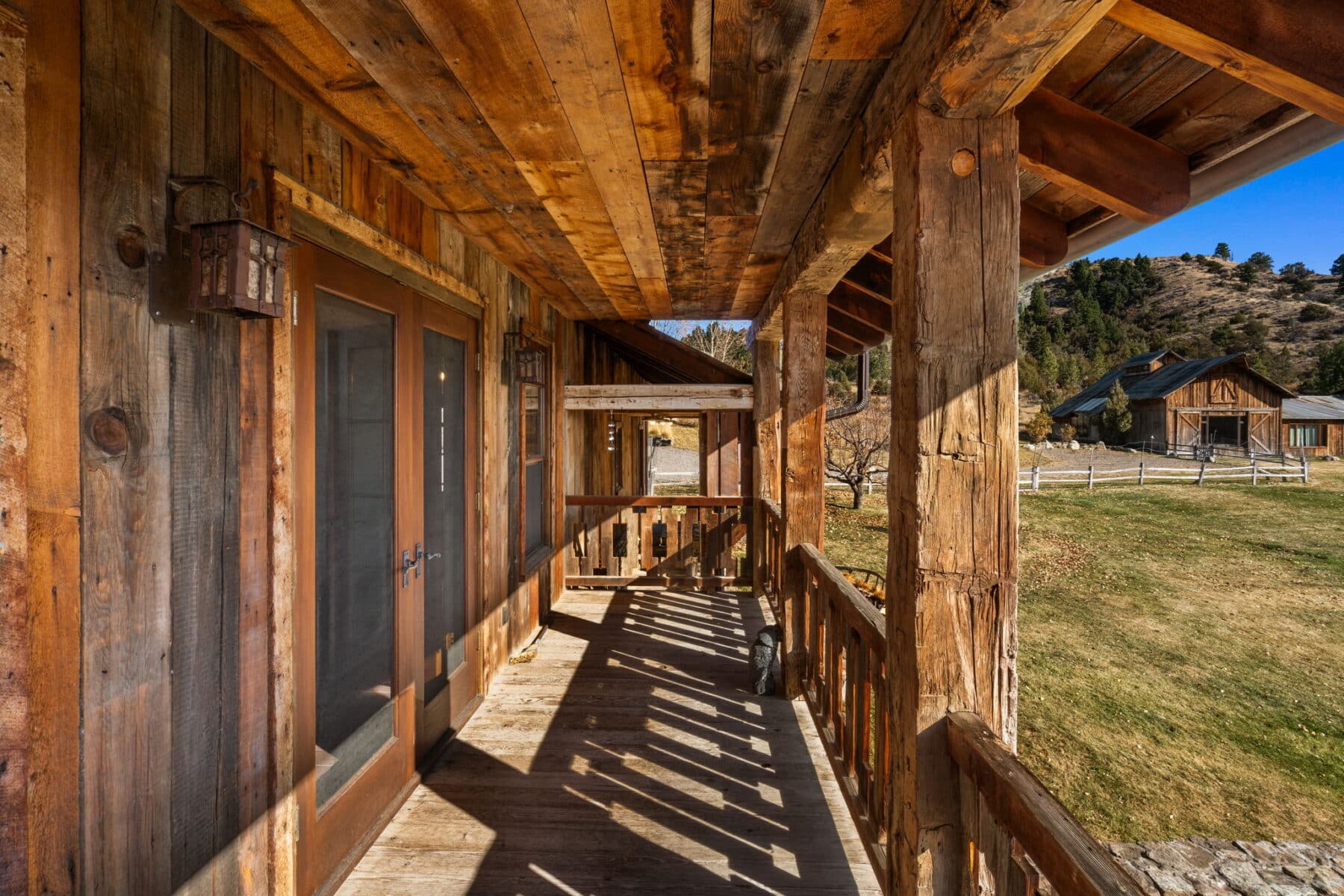 Nestled along the Shields River, this extraordinary 2,226-square-foot residence stands as a masterful blend of historical charm and artistic innovation. Built in 2001 by Yellowstone Traditions under architect Larry Pearson’s vision, the two-bedroom-two-bathroom home showcases reclaimed timber from an 1800s barn, once part of the historic Salisbury Hotel, beautifully complemented by dry-stacked regional moss rock and rusted corrugated metal roofing with copper rain gutters. The artistic owners infused the space with Scandinavian influences, evident in the hand-painted Norwegian blue kitchen cabinetry, custom-crafted staircases, and thoughtful architectural details. The gourmet kitchen features soapstone countertops, a double sink, and high-end appliances, including a Sub-Zero refrigerator and Monogram range. The main floor features a stunning master suite with a spa-like bathroom, complete with a limestone soaking tub, hammered copper double sinks, and a travertine and tumbled marble shower. For easy access to the outdoors, French doors open to a stone patio. The light-filled 690-square-foot upper level, with its own balcony overlooking the river, offers an additional bedroom. Exceptional craftsmanship is displayed throughout, from bold hand-forged metal straps crafted in Red Lodge to old-world Venetian plaster walls and reclaimed fir planking. Modern amenities include radiant in-floor heating, solar panels for domestic water heating, and a Jotul cast iron woodstove set on a massive stone slab. The 1,011-square-foot media room has a large steel door that provides excellent light. If privacy is preferred, the door can be covered with the sliding reclaimed wood door for privacy. The mature landscaping featuring native grass beds transitions seamlessly to the natural river-front setting.