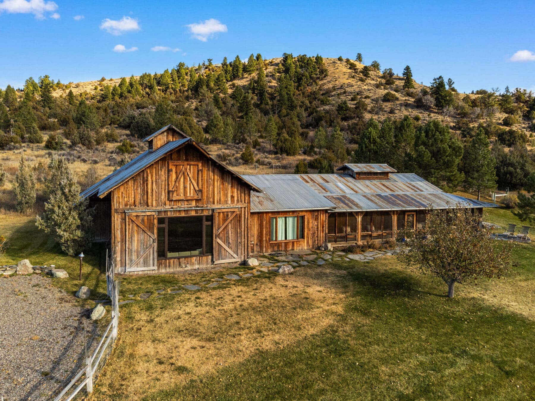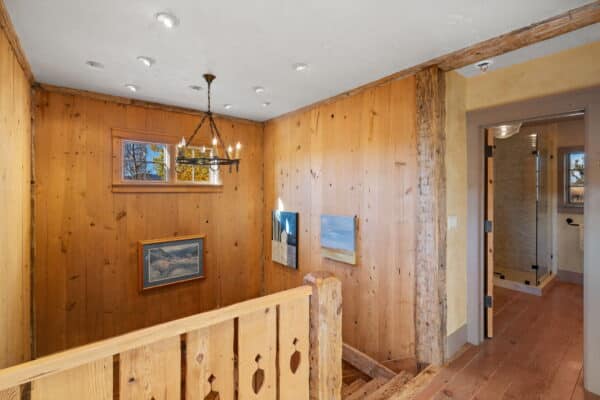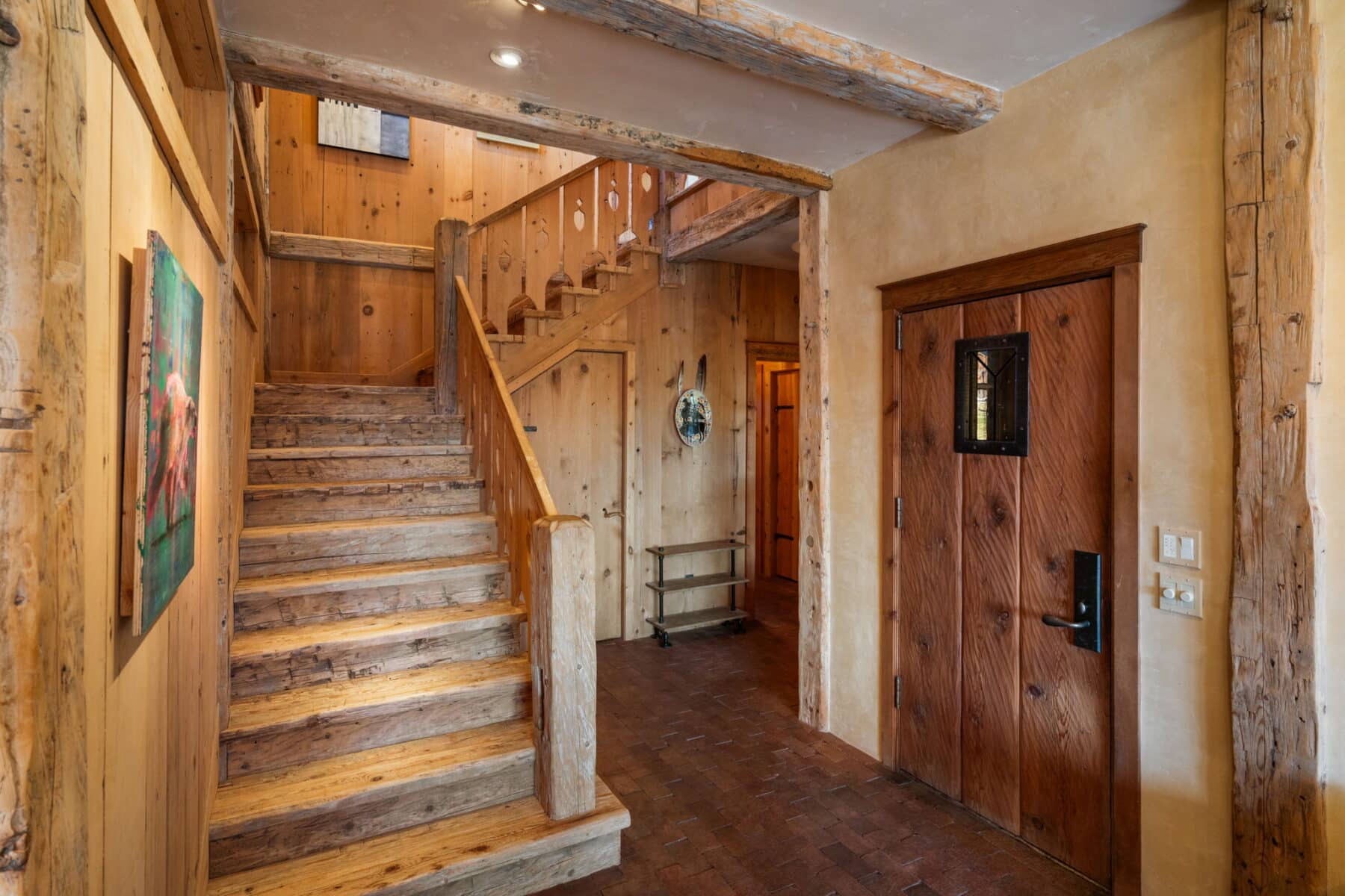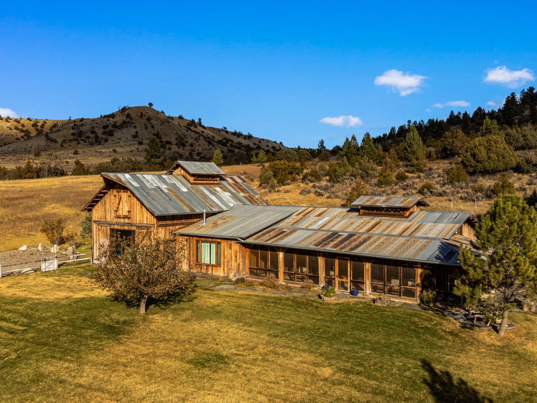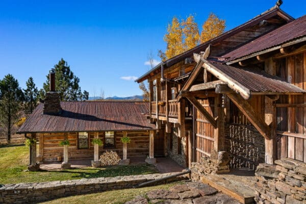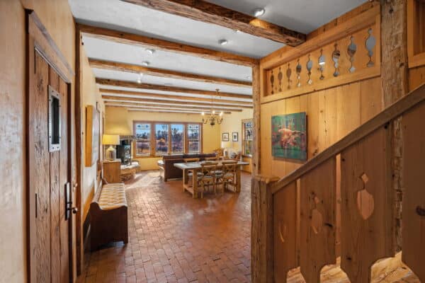 Nestled along the Shields River, this extraordinary 2,226-square-foot residence stands as a masterful blend of historical charm and artistic innovation. Built in 2001 by Yellowstone Traditions under architect Larry Pearson’s vision, the two-bedroom-two-bathroom home showcases reclaimed timber from an 1800s barn, once part of the historic Salisbury Hotel, beautifully complemented by dry-stacked regional moss rock and rusted corrugated metal roofing with copper rain gutters. The artistic owners infused the space with Scandinavian influences, evident in the hand-painted Norwegian blue kitchen cabinetry, custom-crafted staircases, and thoughtful architectural details. The gourmet kitchen features soapstone countertops, a double sink, and high-end appliances, including a Sub-Zero refrigerator and Monogram range. The main floor features a stunning master suite with a spa-like bathroom, complete with a limestone soaking tub, hammered copper double sinks, and a travertine and tumbled marble shower. For easy access to the outdoors, French doors open to a stone patio. The light-filled 690-square-foot upper level, with its own balcony overlooking the river, offers an additional bedroom. Exceptional craftsmanship is displayed throughout, from bold hand-forged metal straps crafted in Red Lodge to old-world Venetian plaster walls and reclaimed fir planking. Modern amenities include radiant in-floor heating, solar panels for domestic water heating, and a Jotul cast iron woodstove set on a massive stone slab. The 1,011-square-foot media room has a large steel door that provides excellent light. If privacy is preferred, the door can be covered with the sliding reclaimed wood door for privacy. The mature landscaping featuring native grass beds transitions seamlessly to the natural river-front setting.