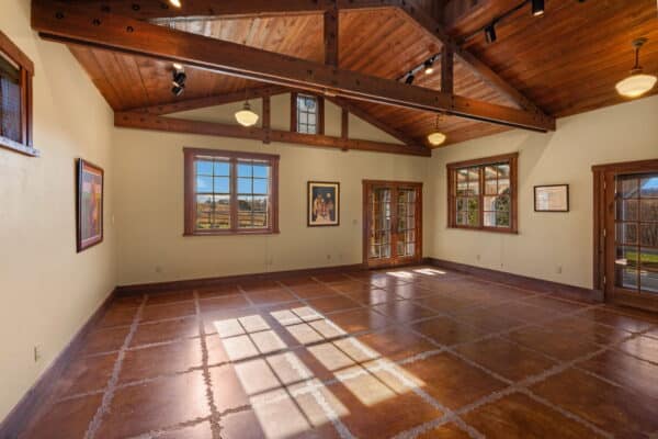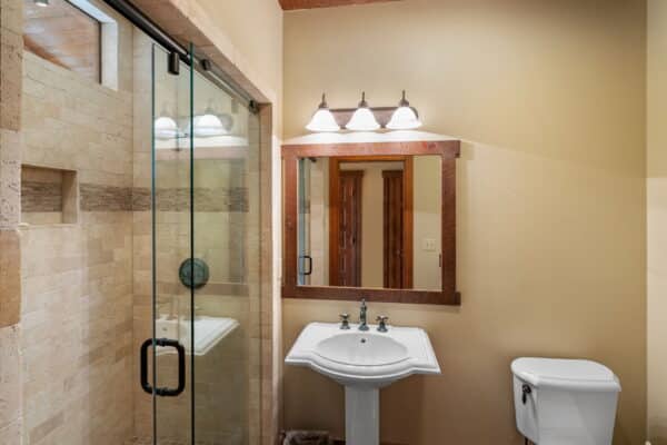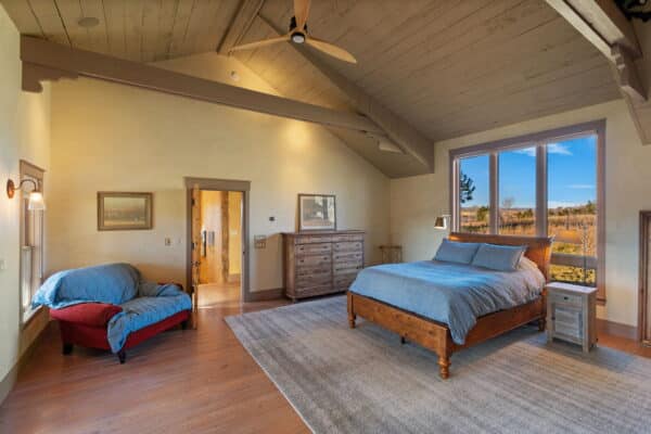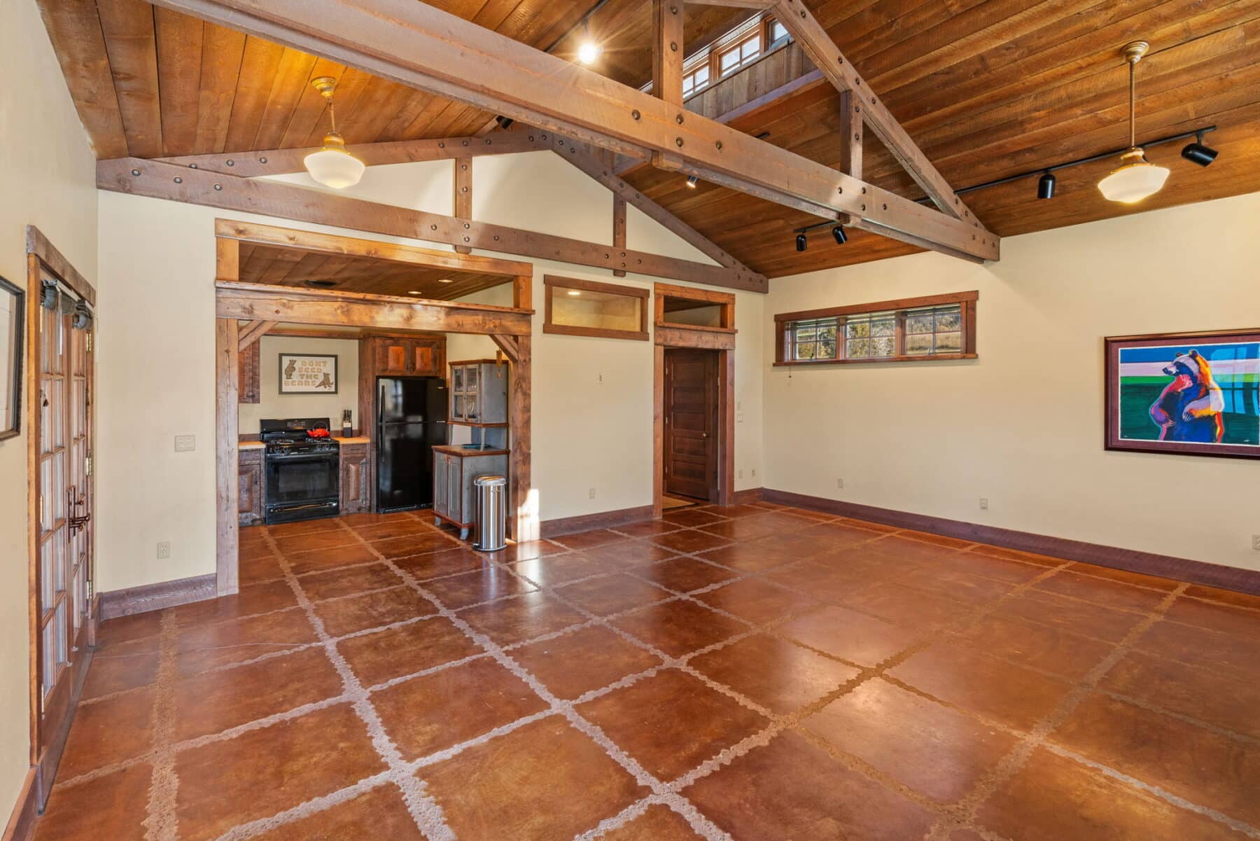 The guest house boasts an open, spacious floor plan with vaulted ceilings capturing the mountain vistas to the west. Utilized for entertaining and guest accommodations, the guest house enjoys similar high-end finishes that complement the main house with its design and positioning.