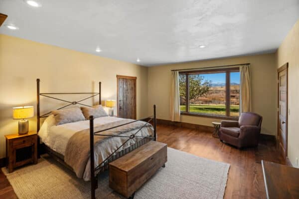 The Yellowstone Traditions home and guest quarters are ideally sited to maximize views of the surrounding mountains’ majesty and the calming waters of the Shields River, which flow through the cottonwood trees. The 2,226-square-foot Larry Pearson-designed home blends into the surrounding landscape. Constructed in 2001, its timeless design will appeal to even the most discerning buyer.