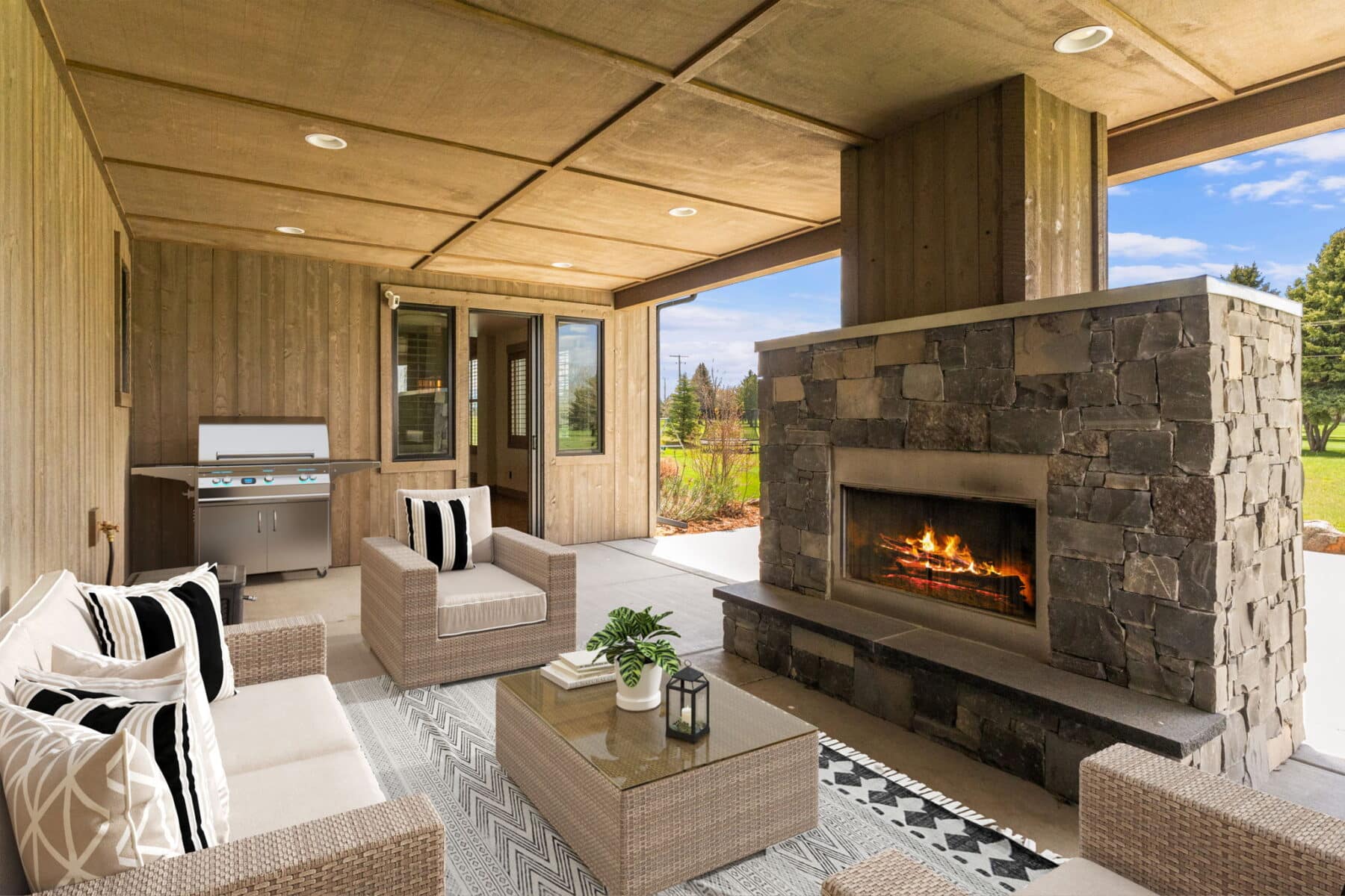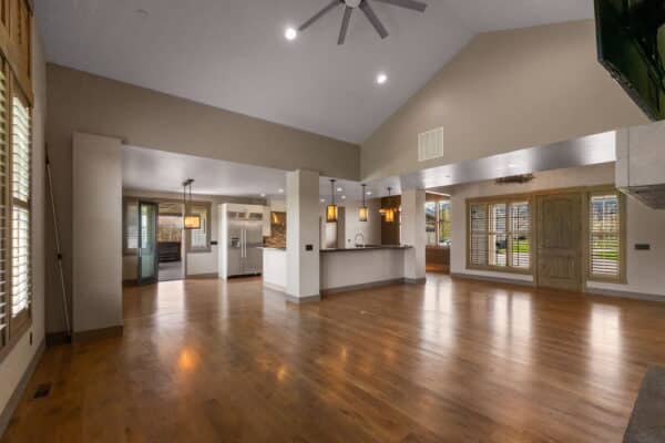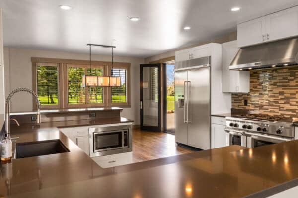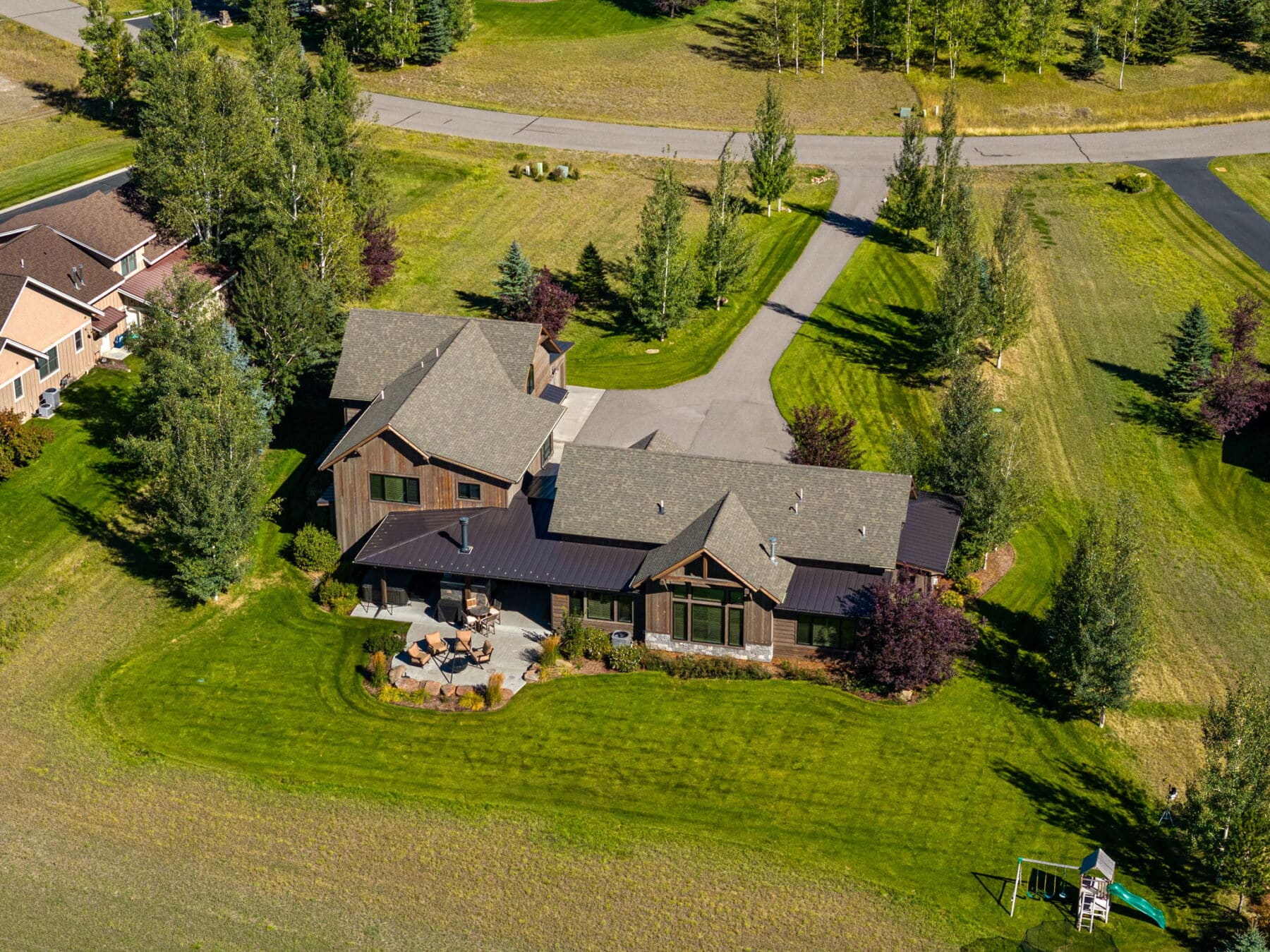 The 4,820-square-foot, four-bedroom, three-and-a-half-bath home is filled with light and has a very welcoming open floor plan that blends indoor and outdoor spaces seamlessly. The spacious kitchen with a wrap-around bar will meet the needs of any family chef or host. The home lives perfectly on one level for a couple but has plenty of additional space and bedrooms for family and guests. Overlooking the perfectly manicured Riverside Golf Course, the partially covered patio space is set up for outdoor grilling and is complete with a wood-burning fireplace, fire pit, and hot tub. The attached four-car garage allows for plenty of storage for all the essential Montana vehicles and recreation equipment. This 1.27± acre lot is beautifully landscaped and has big views of the Bridger Mountains. Manley Meadows is located very close to two golf courses, and the famed MAP Brewery and Downtown Bozeman are just minutes away, all on paved streets. This is your opportunity to live in a custom home in Manley Meadows Subdivision, one of Bozeman’s best neighborhoods.