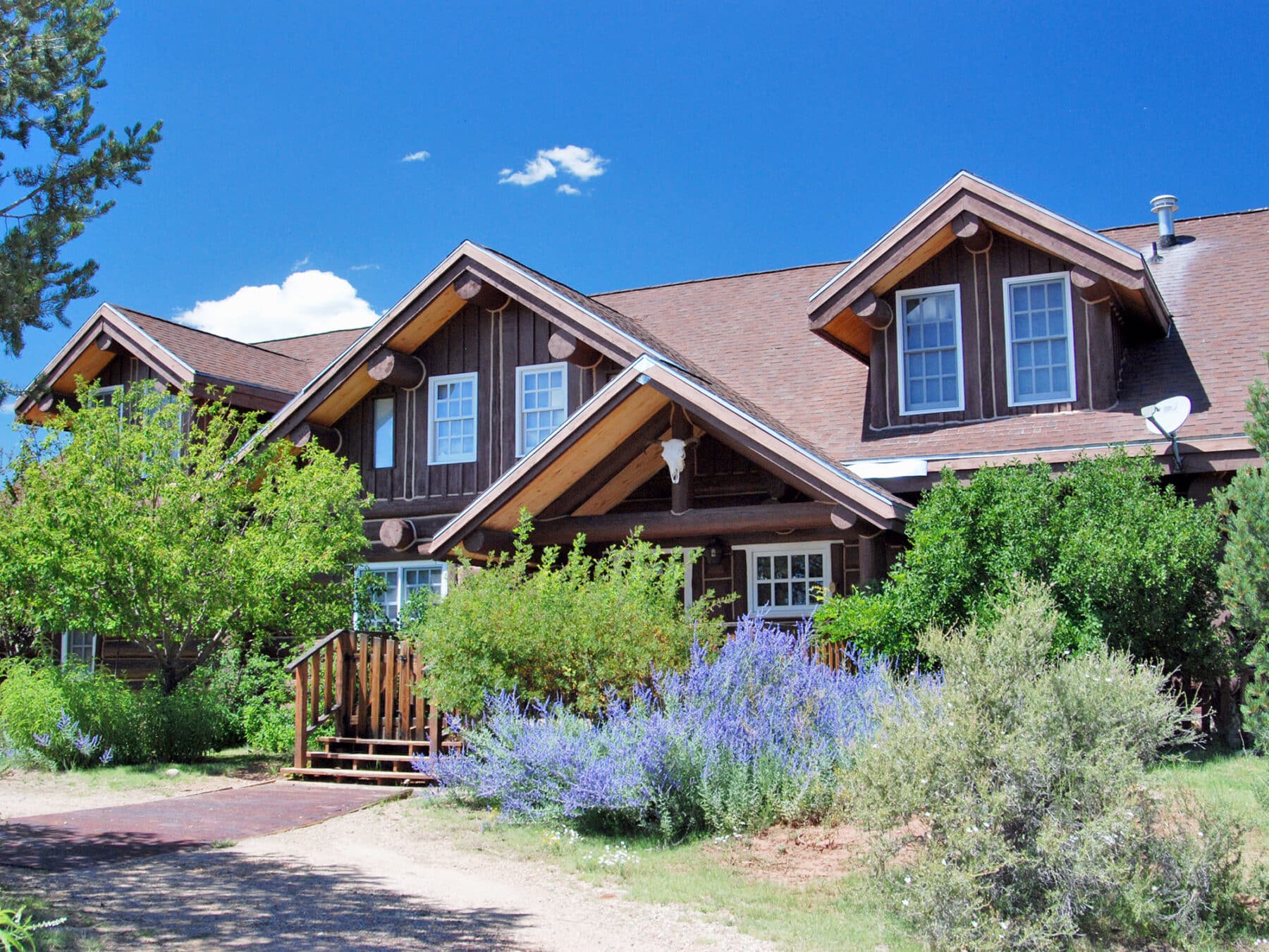 The Log House is located about two miles from the Ranch Headquarters on the Upper Road overlooking the Pecos River Valley and the adjoining Santa Fe National Forest and Pecos National Historical Park.