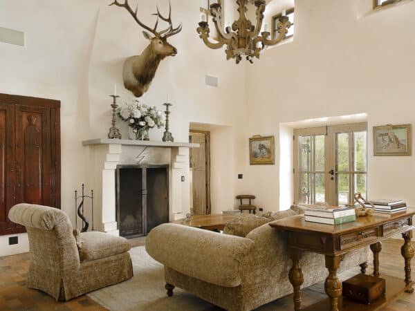 Fonda’s extensive personal collection of antiques, artwork, rugs, furniture, and literary collection which complement the architectural design of River House is available for purchase as well as the Ranch equipment and machinery. These chattels would be negotiated and purchased outside of the real estate transaction. A complete inventory of Personal Property and ranch equipment is available by contacting our Bozeman Office and is subject to the terms contained in the Offering Price and Conditions of Sale.