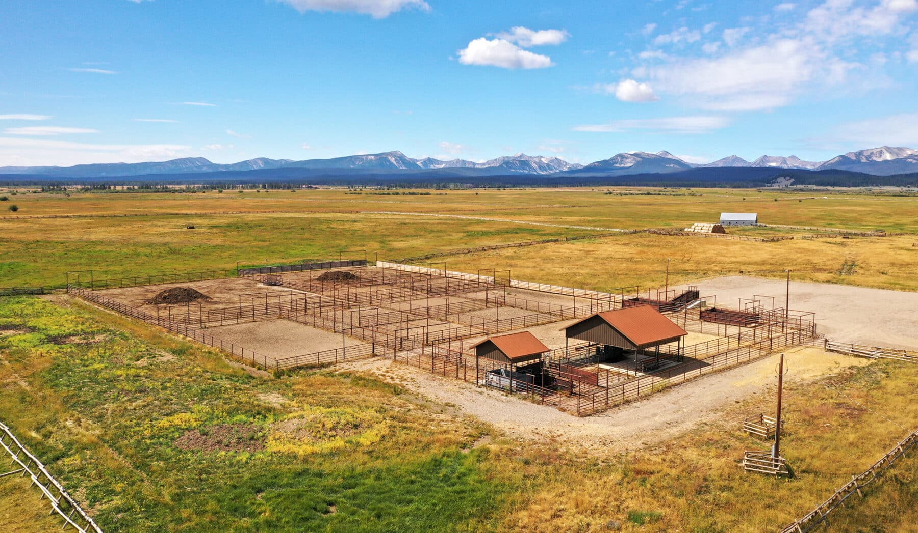 Newly constructed with continuous steel-pipe construction throughout, the corral facility will comfortably process 700 to 1,000 head of cattle. With easy access off of the graveled county road, there is plenty of room for cattle trucks to easily swing into the facility to load and unload. Sorting cattle is easily accomplished with a number of smaller holding pens located off of the main alley that runs the length of the facility. Three large holding pens are served by well-fed waterers allowing for space to hold cattle for extended periods of time. The Silencer Chute is covered, lit with LED lights and is fed by a well-designed Bud Box and alley system. A set of 10′ x 20′ 20,000 lbs capacity Rice Lake scales is also integrated into the corral system.