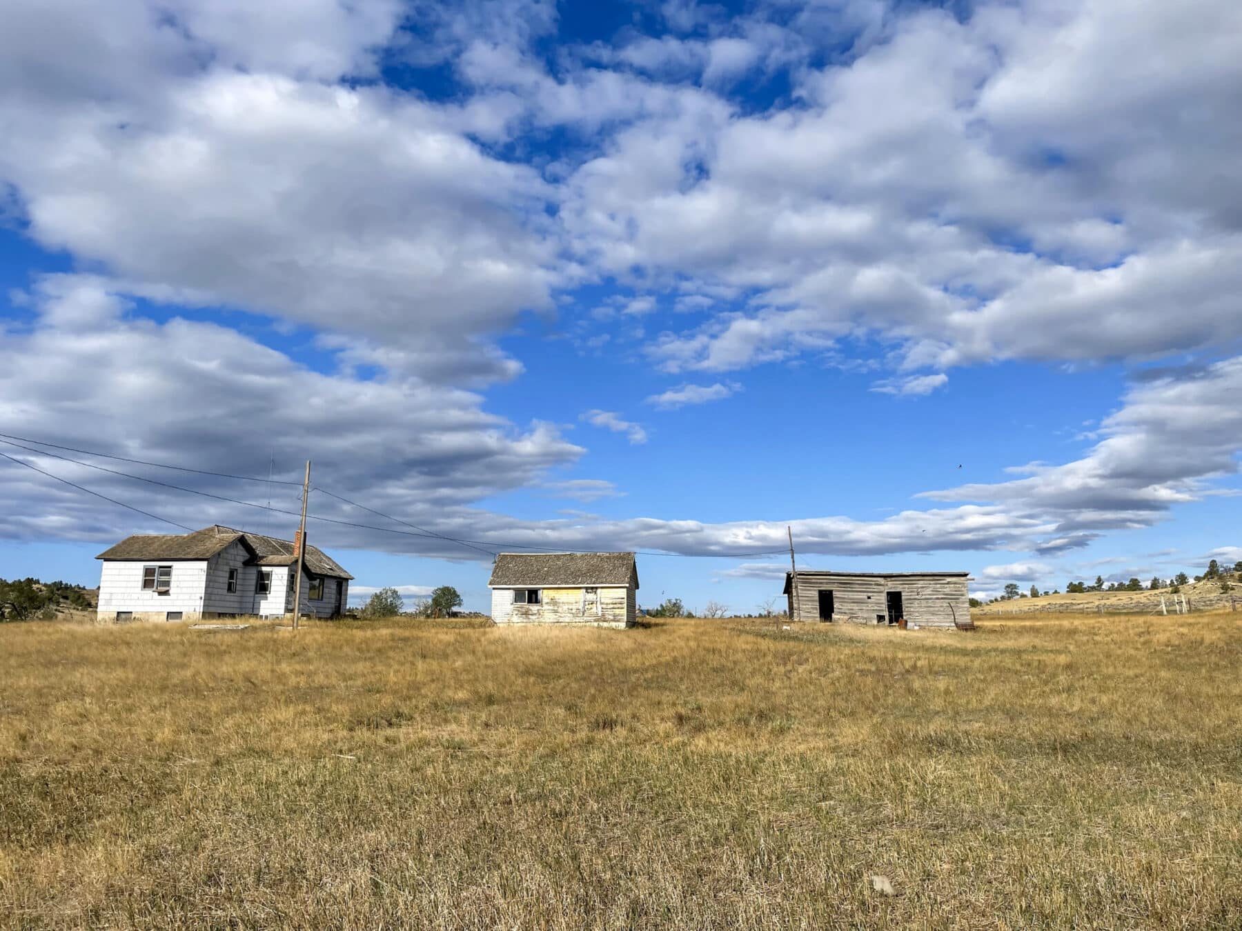 The original ranch home was built in 1912 with three bedrooms and one-and-a-half bathrooms in 1,500 square feet of living space. The 24′ by 40′ pole-barn-styled garage is currently used for parking and storage. Multiple outbuildings lie within the farmstead including a large barn that measures approximately 40′ by 100′, two livestock sheds, and a small set of corrals. Nearby to the north, a 150′ by 30′ calving barn is usable but is in need of repairs and maintenance.