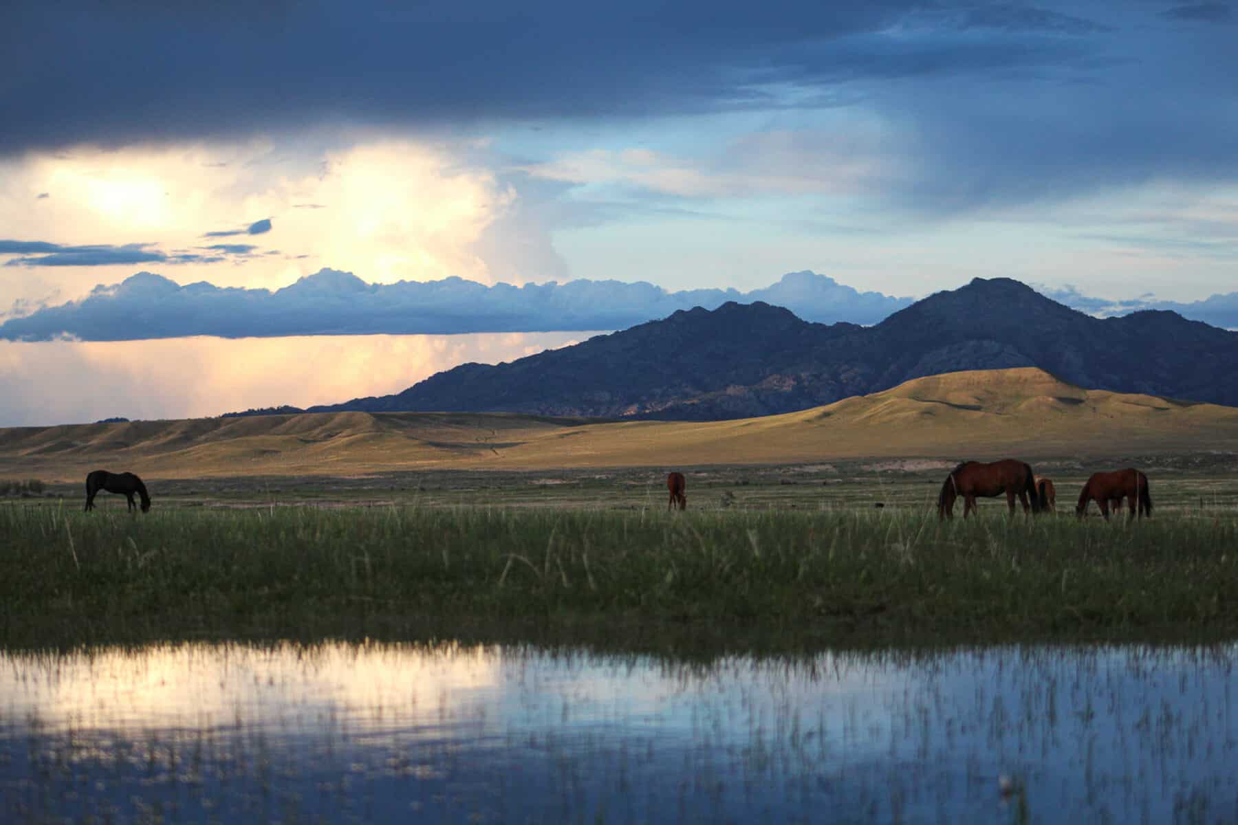 Pathfinder Ranches unfolds across an expansive canvas of terrain that combines grasslands, river corridors, sagebrush canyons, unique rock outcropping vistas, and mountainous ground with ponderosa pine, juniper, and aspen trees, capturing the full essence of Wyoming’s high plains and Rocky Mountain edge. The ranch surrounds much of Pathfinder Reservoir, contains over 20 miles of the Sweetwater River, and encompasses portions of the Pedro, Ferris, Seminoe, and Green Mountain ranges, with vast amounts of rangeland between these iconic features.