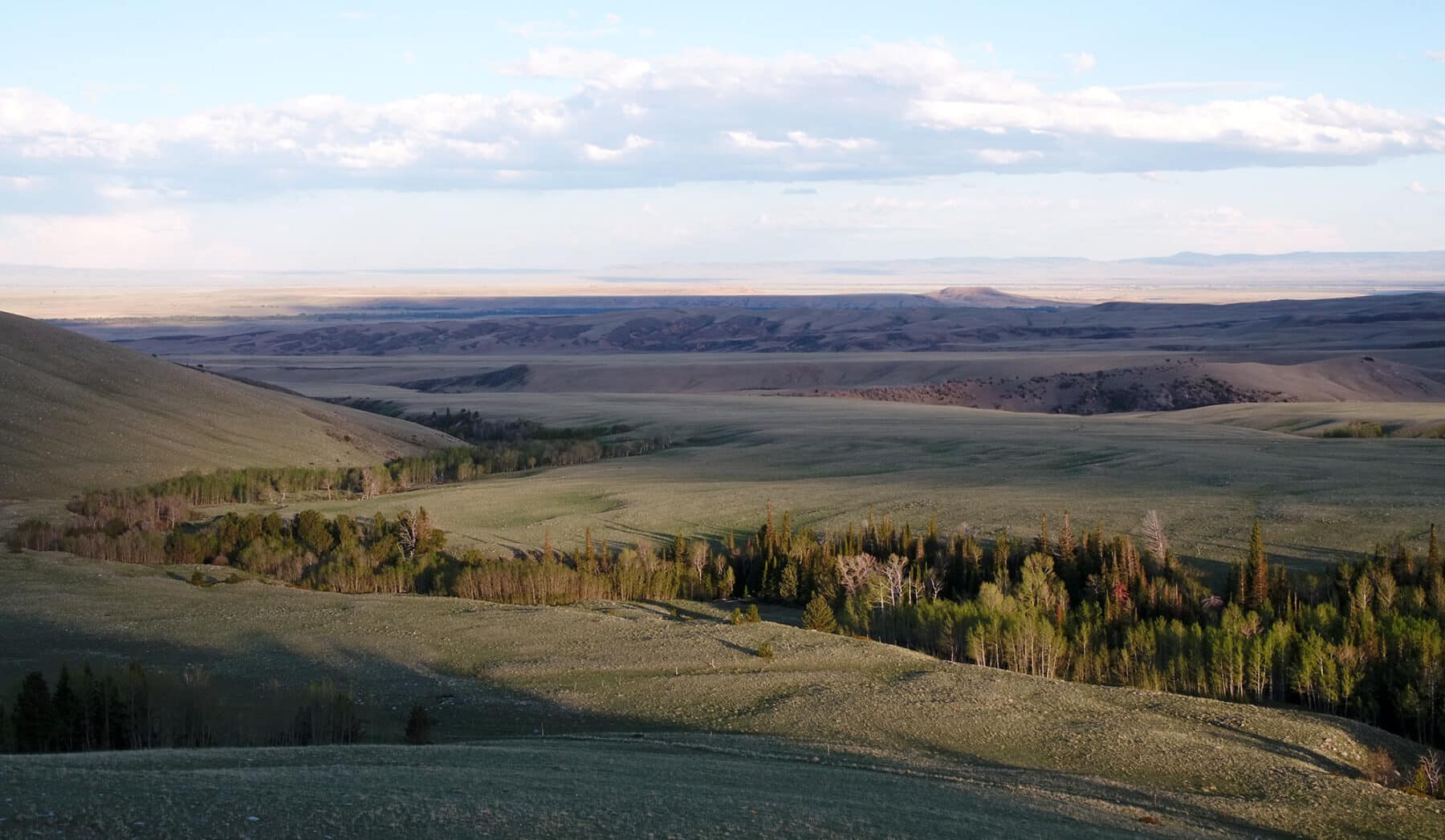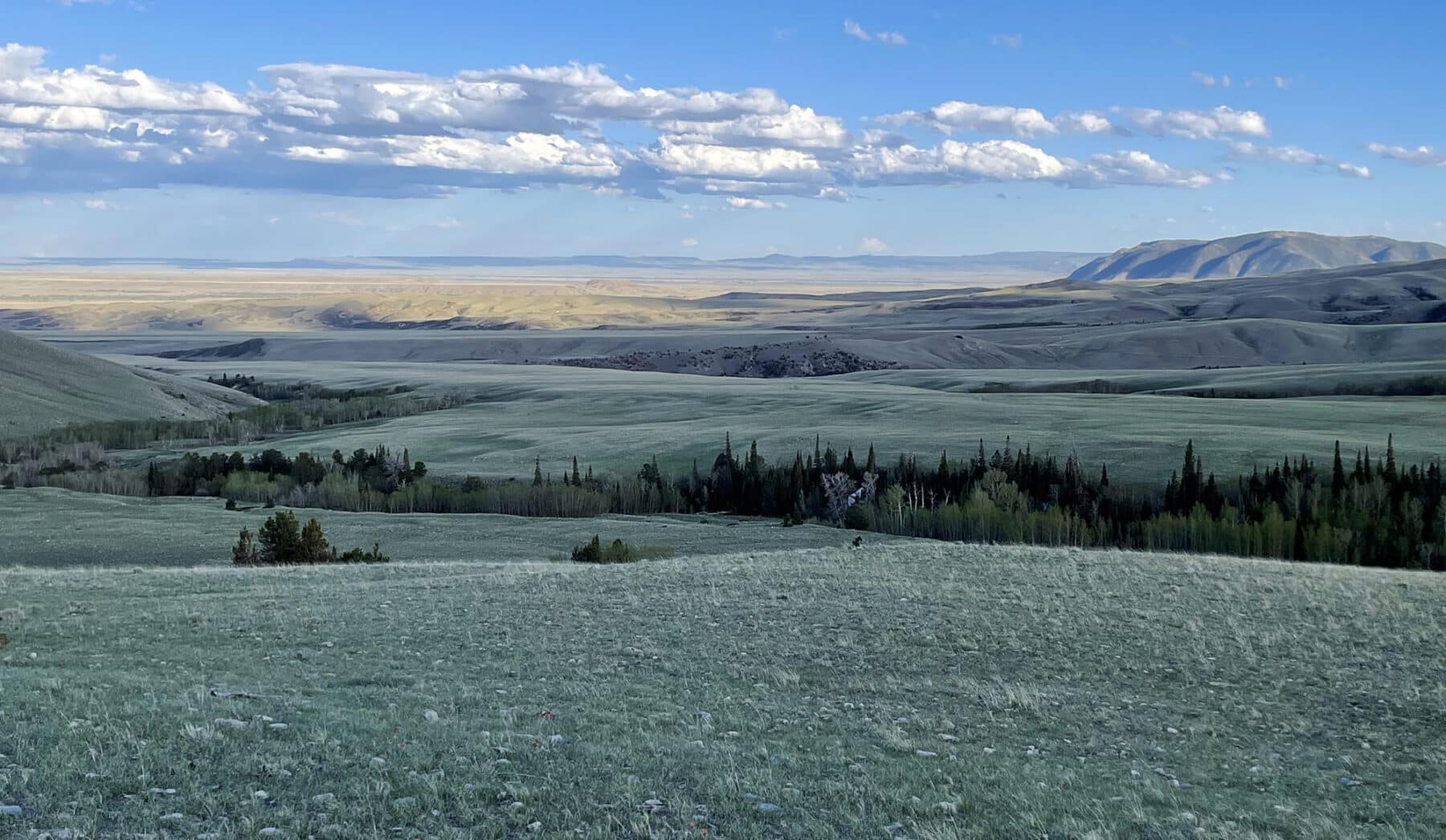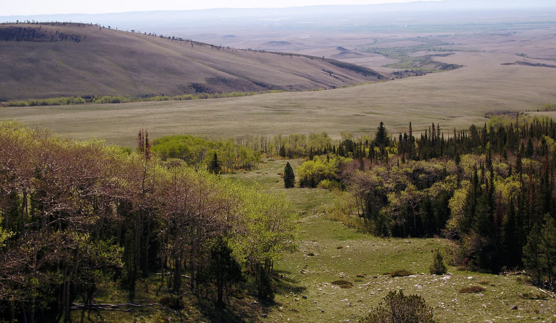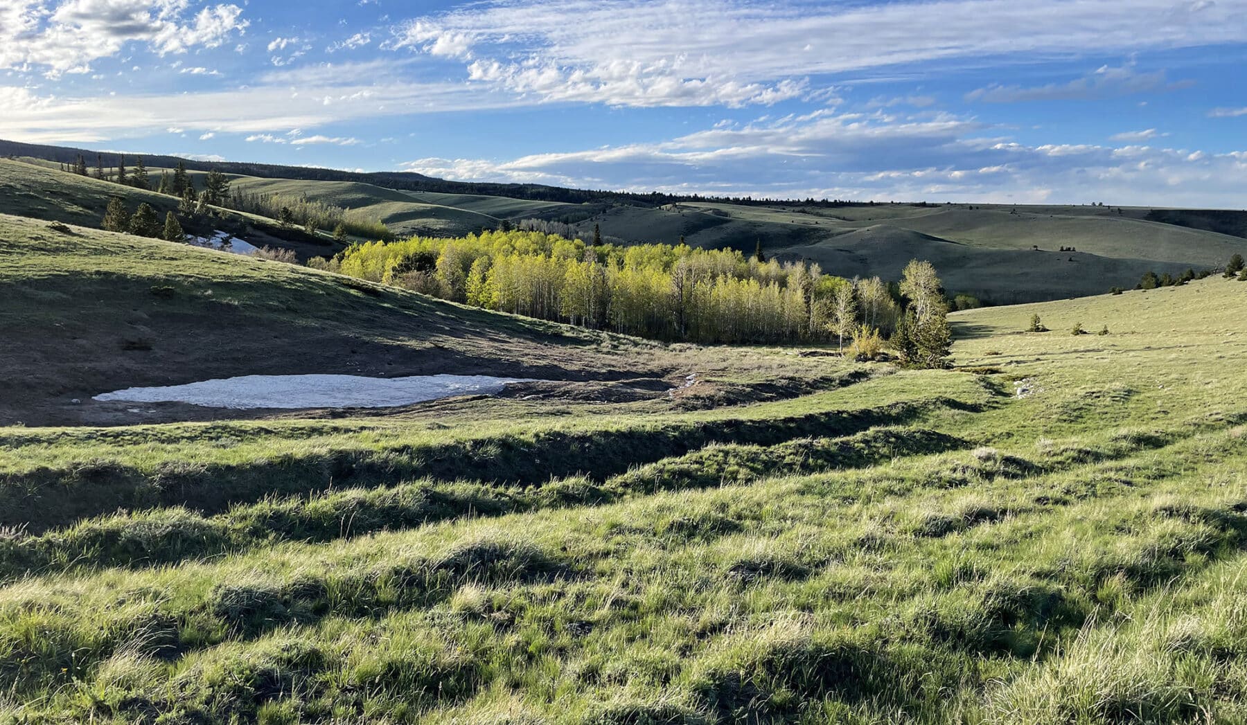 Snowy Range Ranch is very diverse with over 1,570 feet of elevation change. The ranch covers multiple land classification zones ranging from the riparian zone along the three forks of Mill Creek filled with willows and cottonwood trees, through the irrigated and sub-irrigated meadows, across large grassy plains, and up the valleys with mountain mahogany and junipers, to the steep uprising of Bunker Hill, to alpine meadows ornamented by generous groves of aspens and pines.