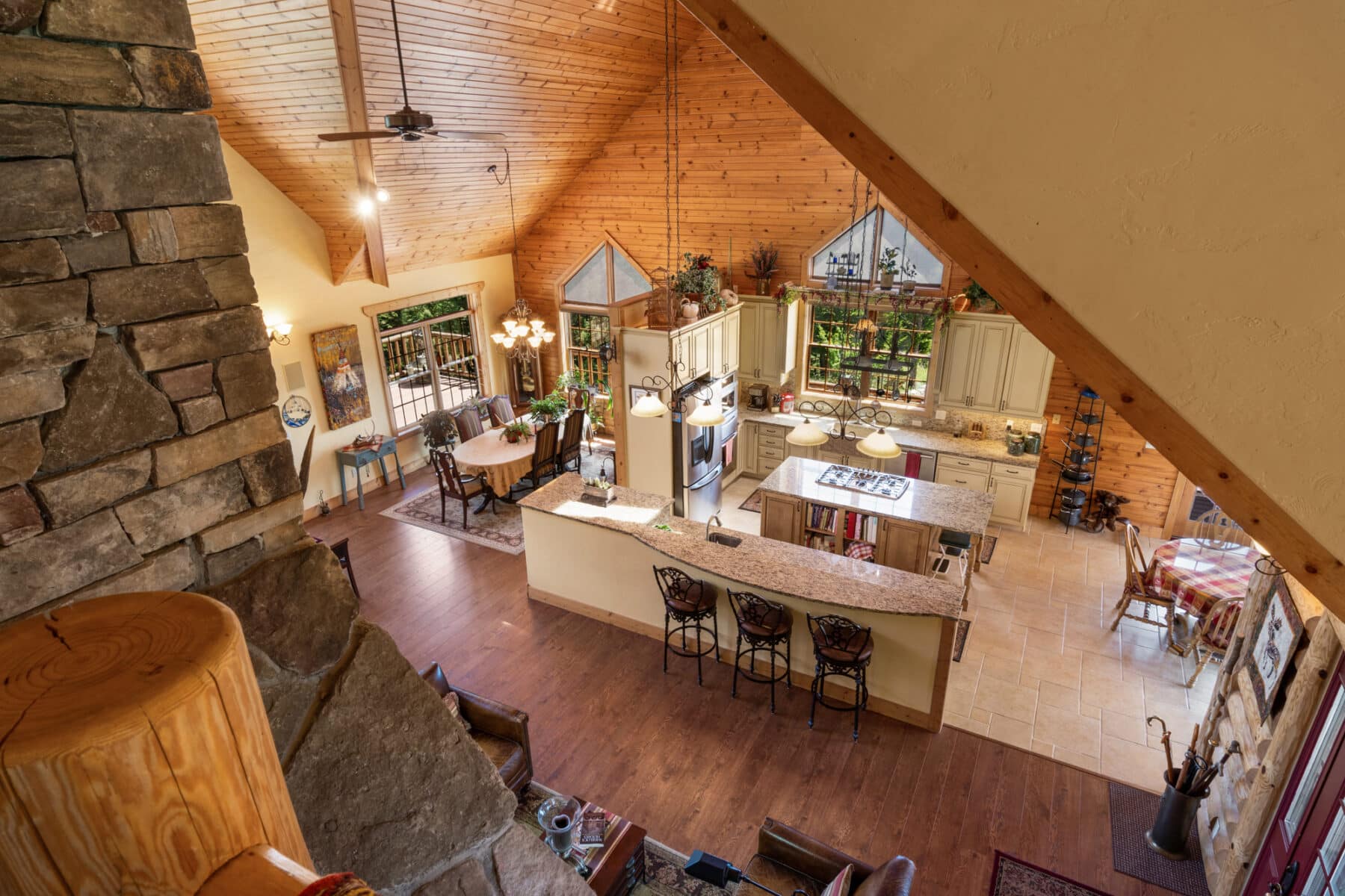 - Open Great Room with Vaulted Tongue & Groove Knotty Pine Ceilings